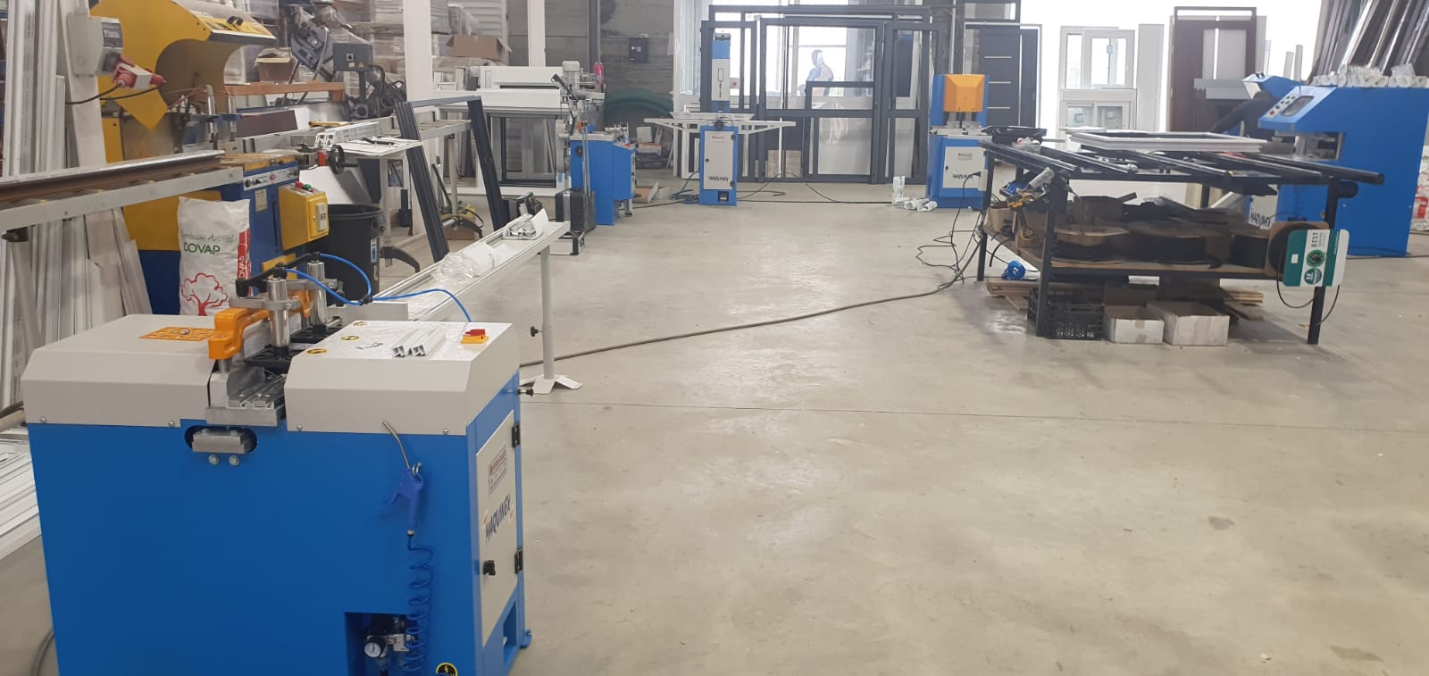 Instalación de una doble cabezal marca Mecal modelo SW 453 Reverse Garda 3 más 3 tronzadoras SW 400 M y una copiadora FR 810