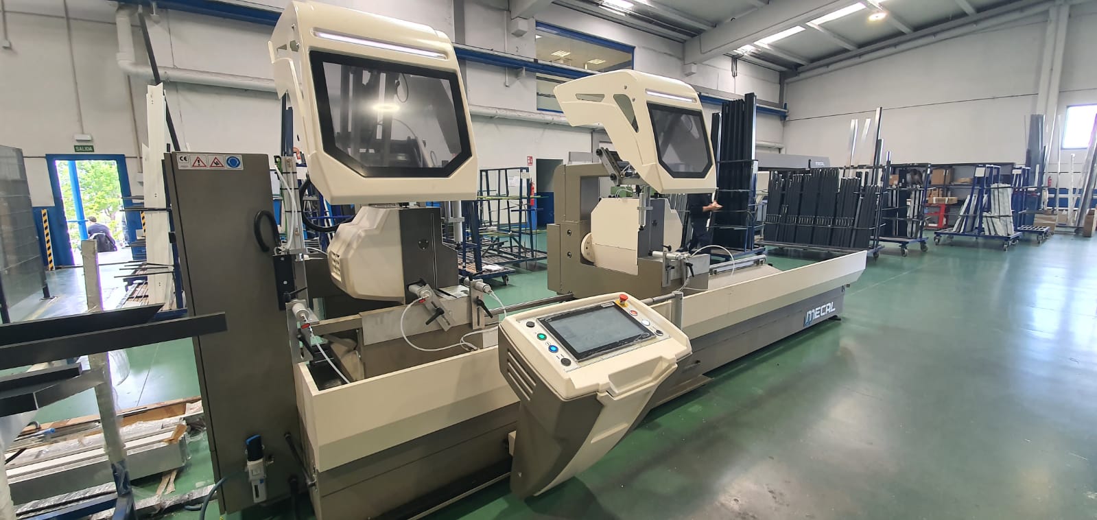 Instalación de una doble cabezal marca Mecal modelo SW 453 Reverse Garda 3 más 3 tronzadoras SW 400 M y una copiadora FR 810. En Inrialsa de Logroño.
