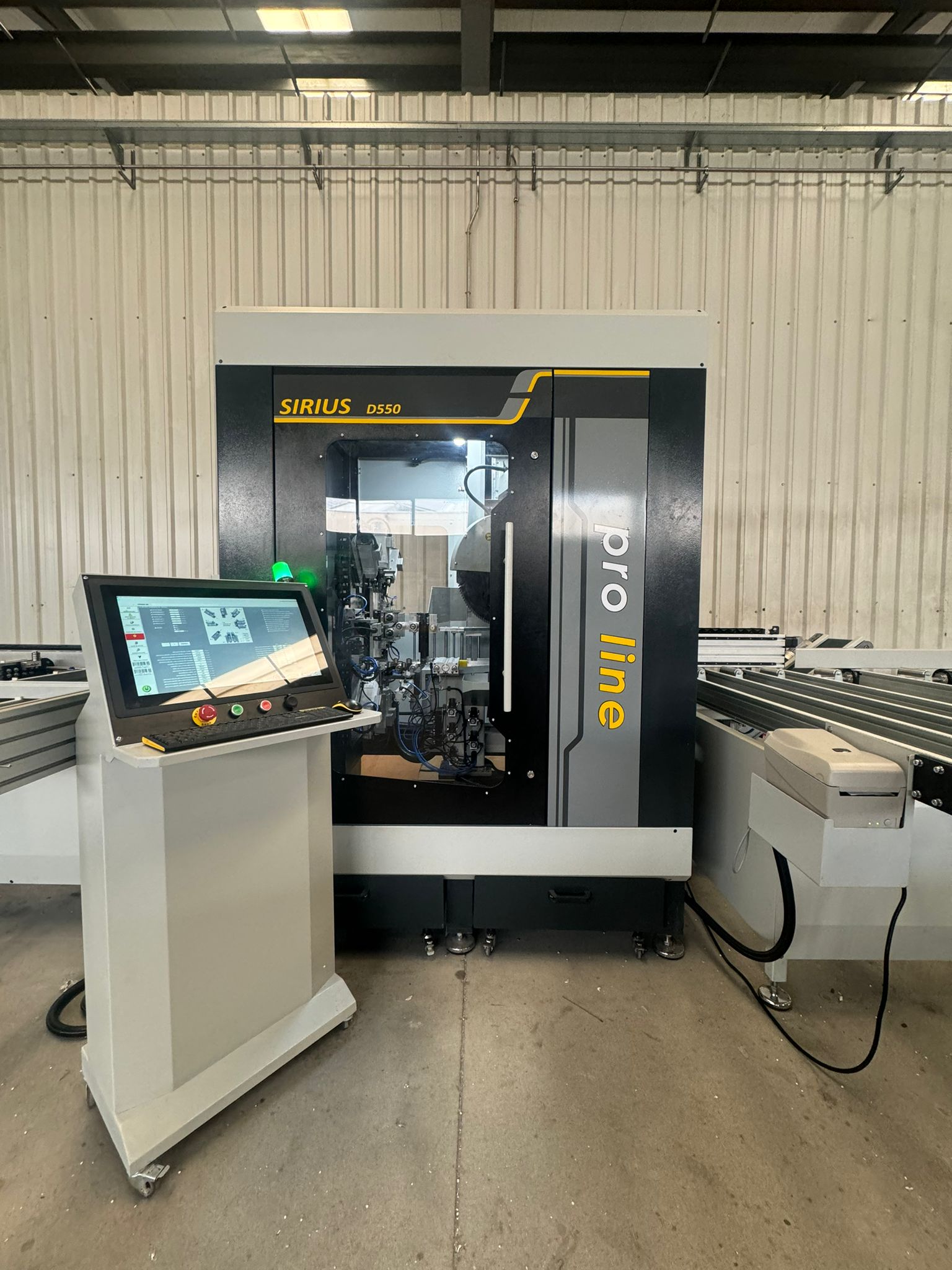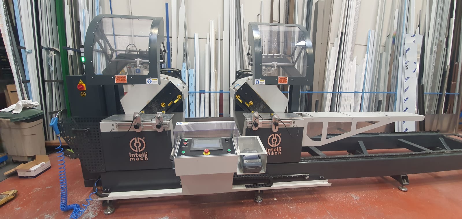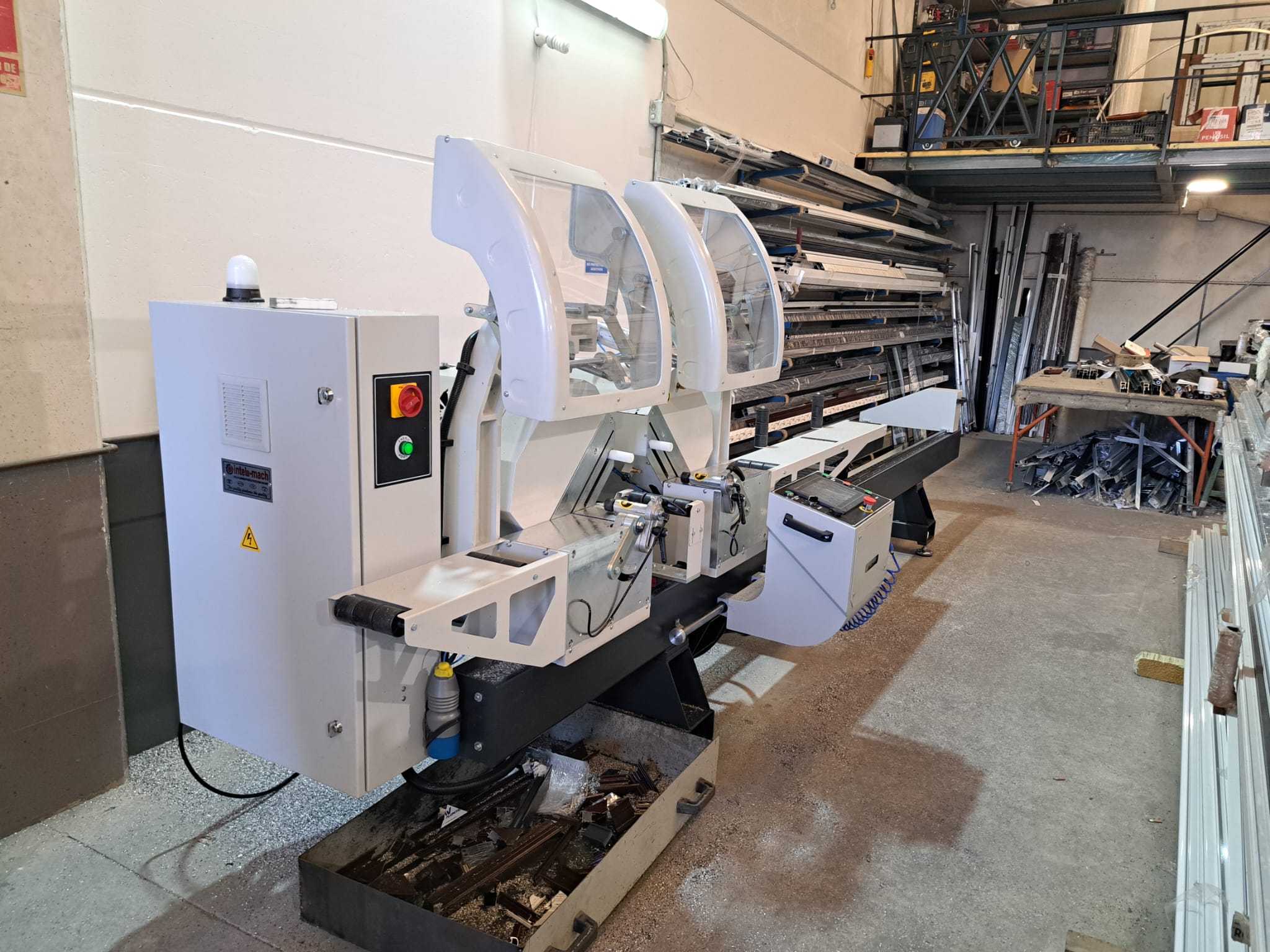 Instalación de una tronzadora doble cabezal para perfiles de PVC en Arcalu Zaragoza.