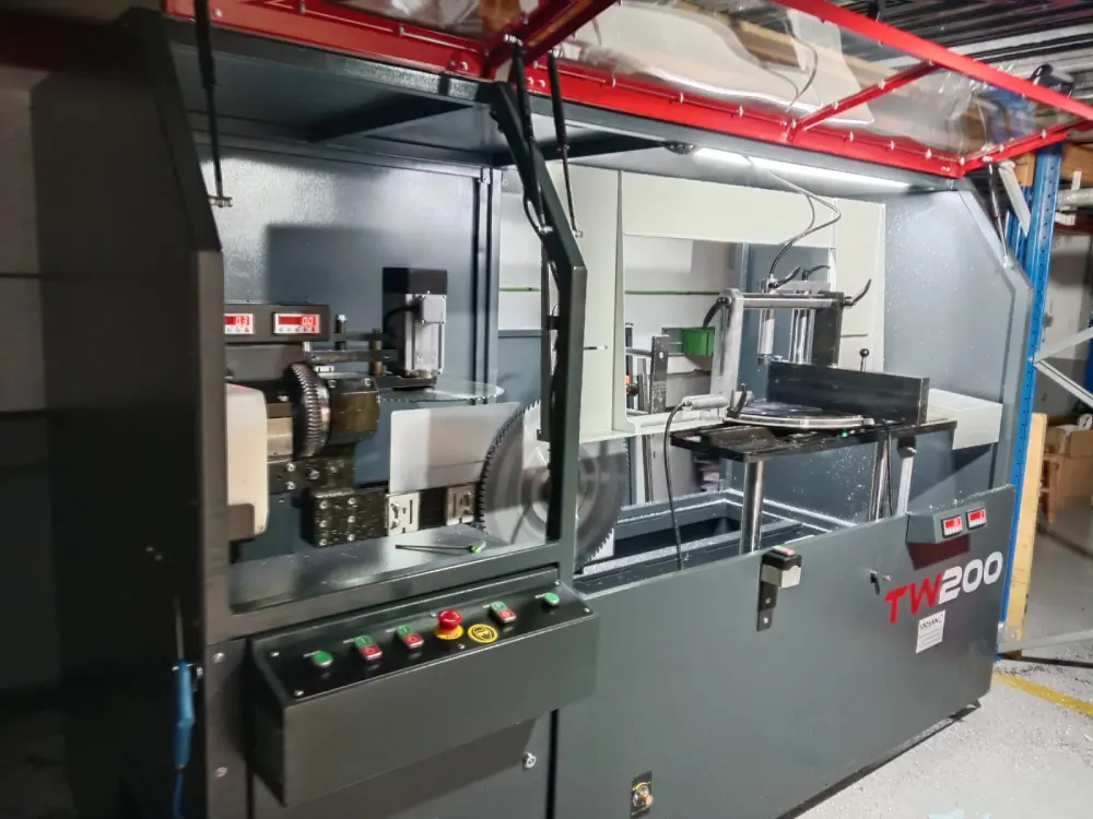 Instalación de una tronzadora con alimentador para corre a 90 grados marca Intelli modelo Sc 550 en Ypsos Guadalajara