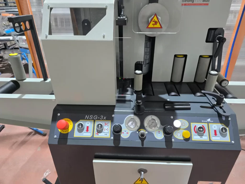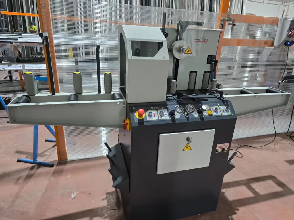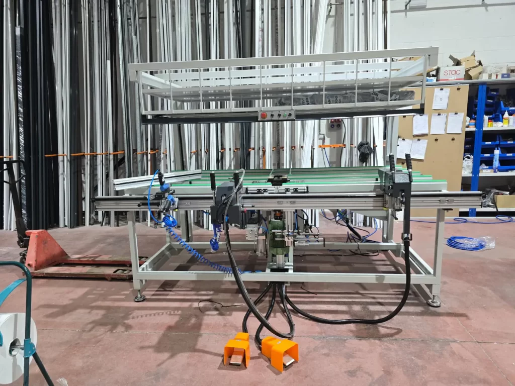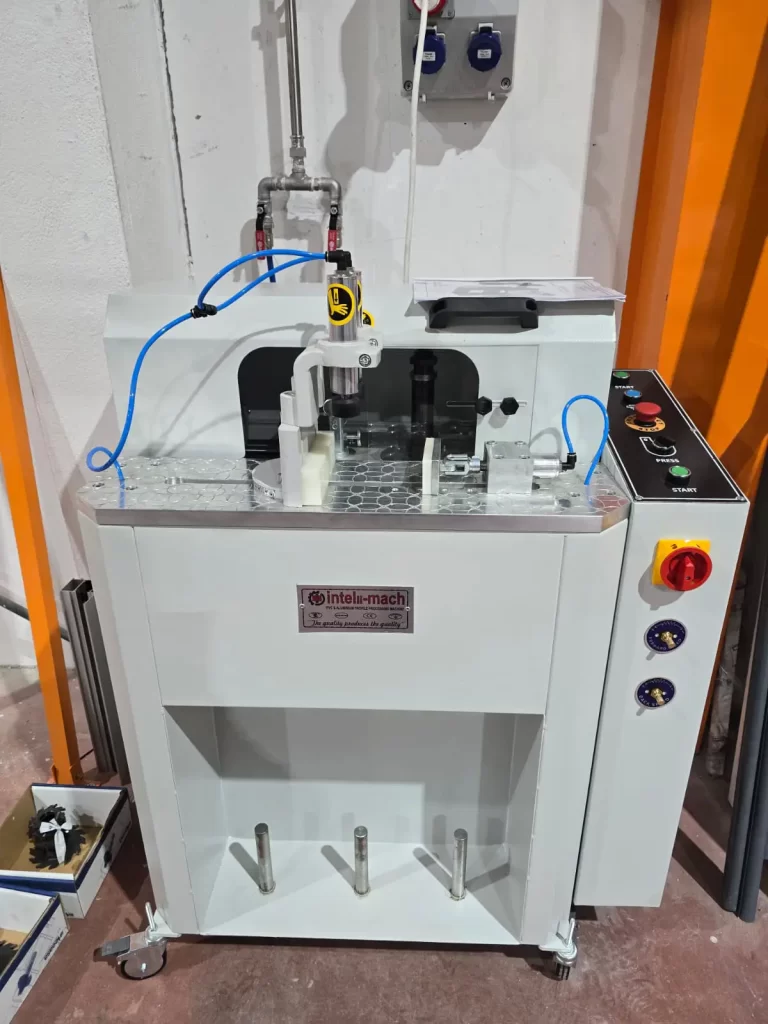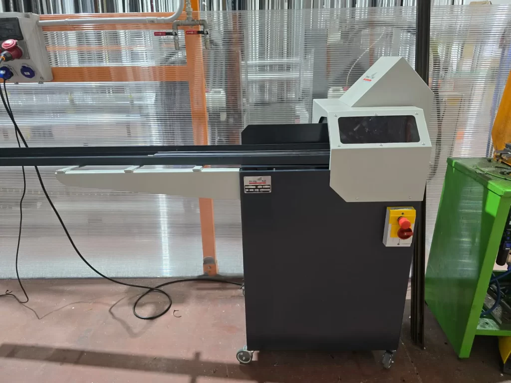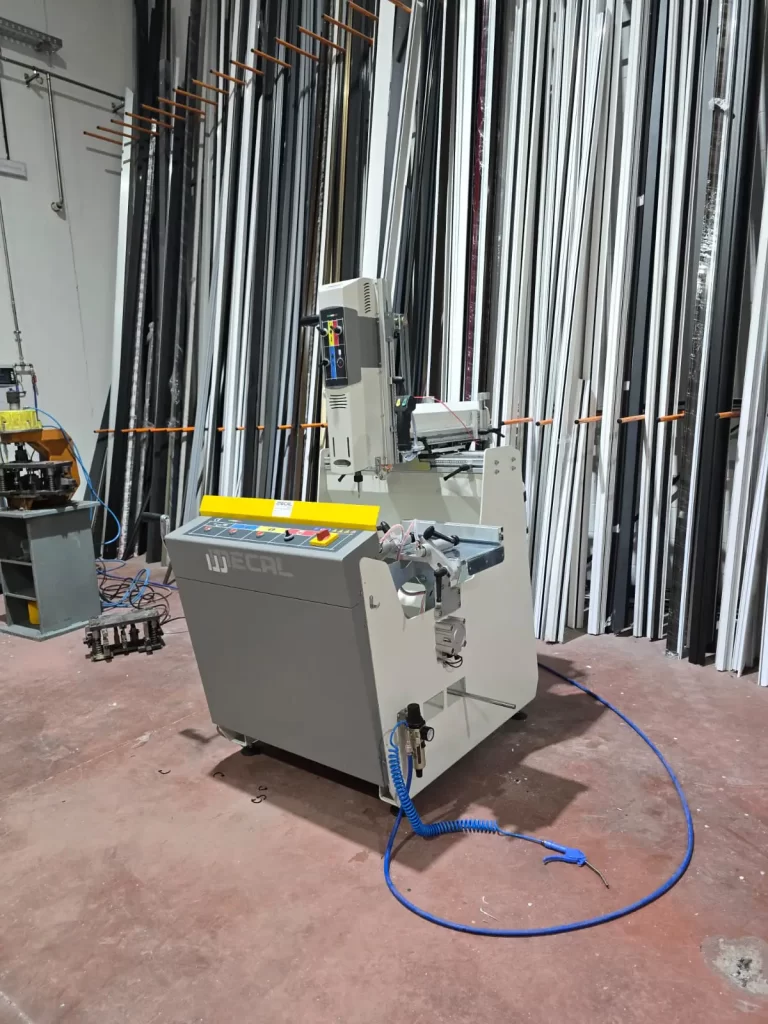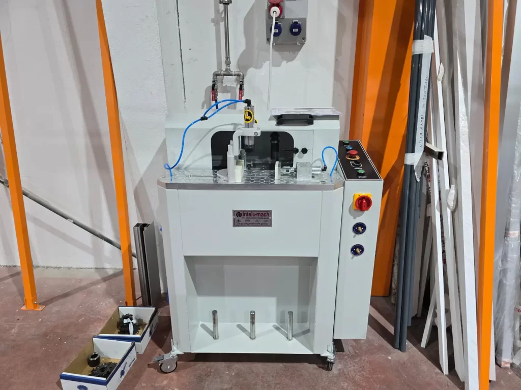 Instalación de una doble cabezal para el corte de perfiles de pc disco cuatrocientos cincuenta milímetros marca Intelli machInstalación de una doble cabezal para el corte de perfiles de pc, disco cuatrocientos cincuenta…