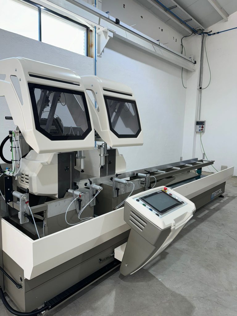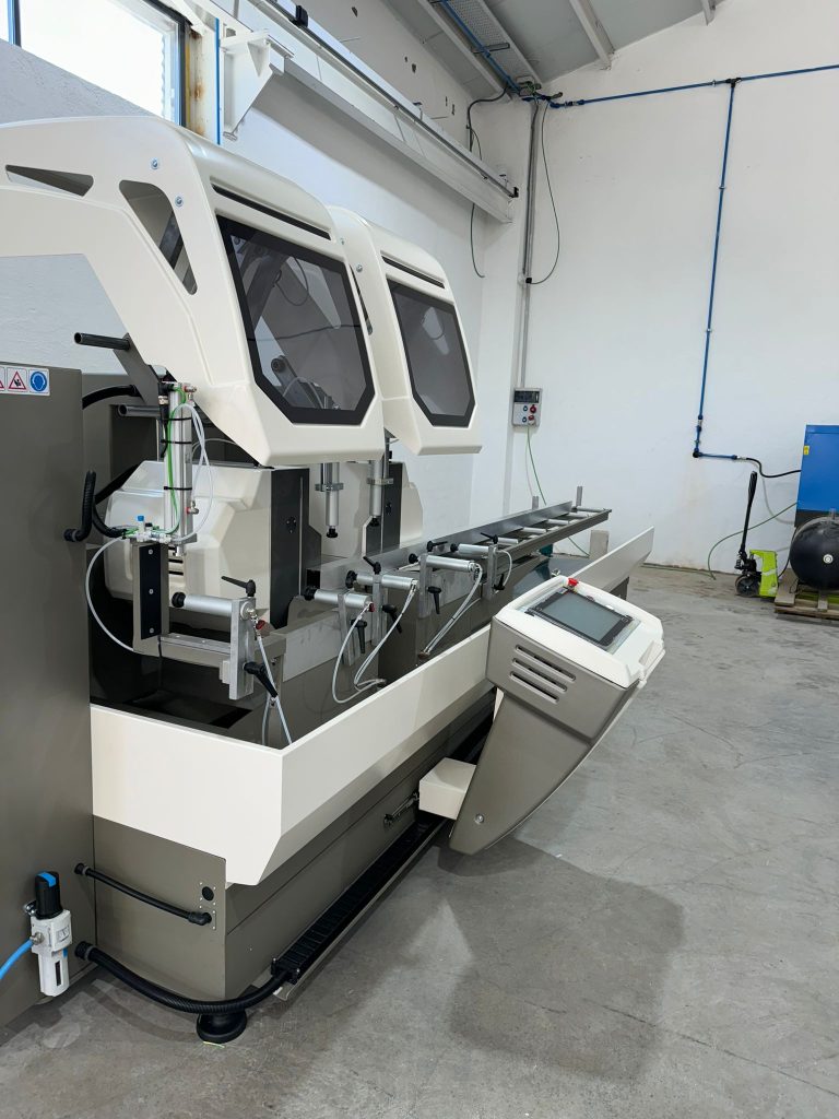 Instalación de una doble cabezal para el corte de perfiles de pc disco cuatrocientos cincuenta milímetros marca Intelli machInstalación de una doble cabezal para el corte de perfiles de pc, disco cuatrocientos cincuenta…