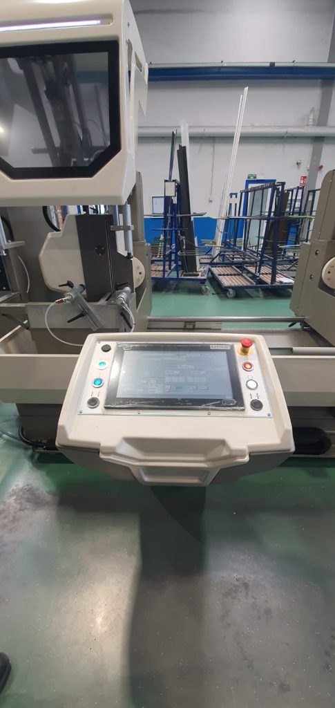 Instalación de una doble cabezal marca Mecal modelo SW 453 Reverse Garda 3 más 3 tronzadoras SW 400 M y una copiadora FR 810