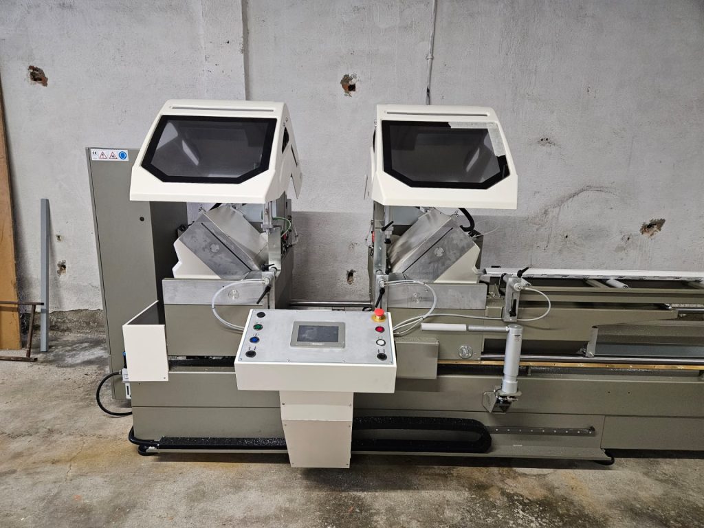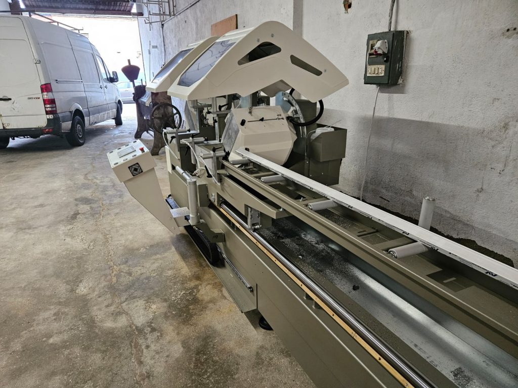 Instalación de una doble cabezal para el corte de perfiles de pc disco cuatrocientos cincuenta milímetros marca Intelli machInstalación de una doble cabezal para el corte de perfiles de pc, disco cuatrocientos cincuenta…
