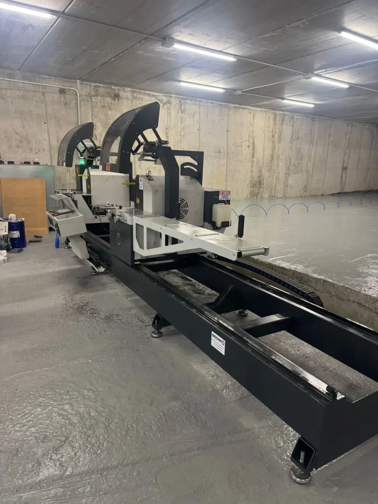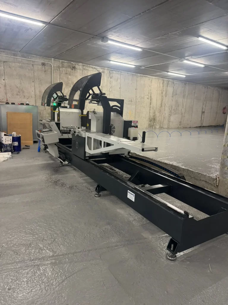 Instalación de una doble cabezal para cortar perfiles de Pvc en Talleres tapia de Segovia marca Intelli.