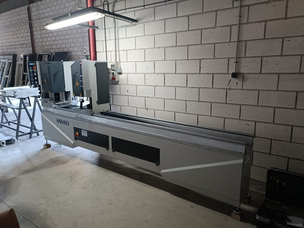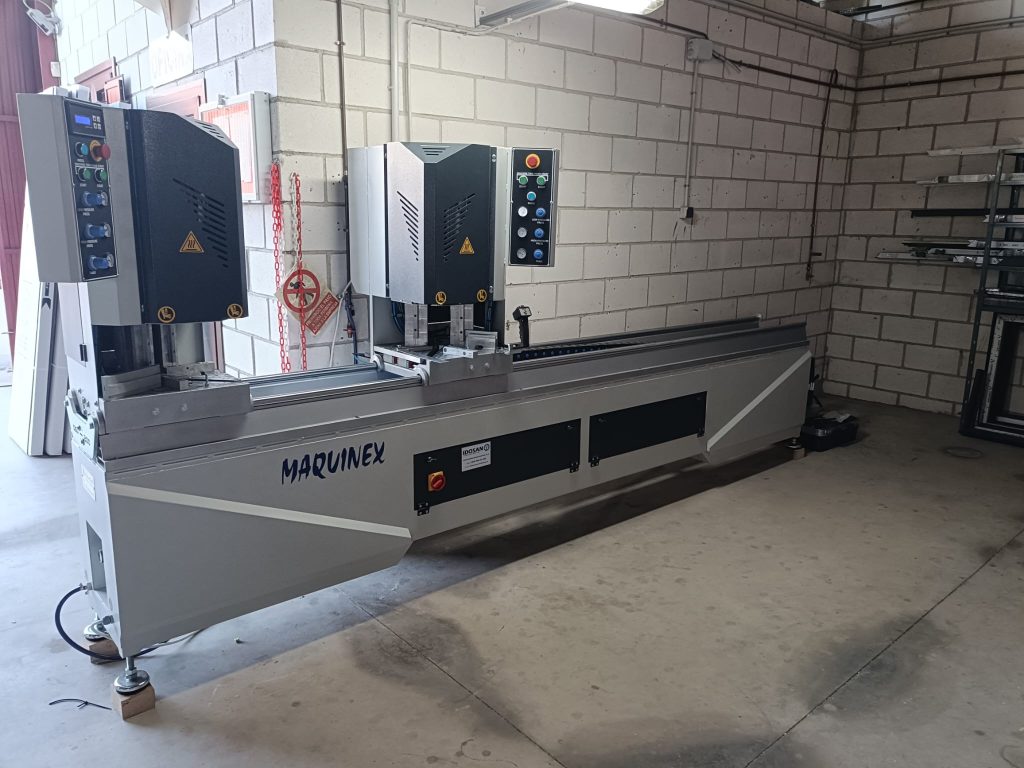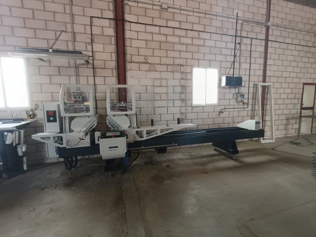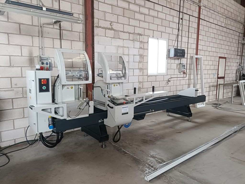 Instalación de una doble cabezal para el corte de perfiles de pc disco cuatrocientos cincuenta milímetros marca Intelli machInstalación de una doble cabezal para el corte de perfiles de pc, disco cuatrocientos cincuenta…