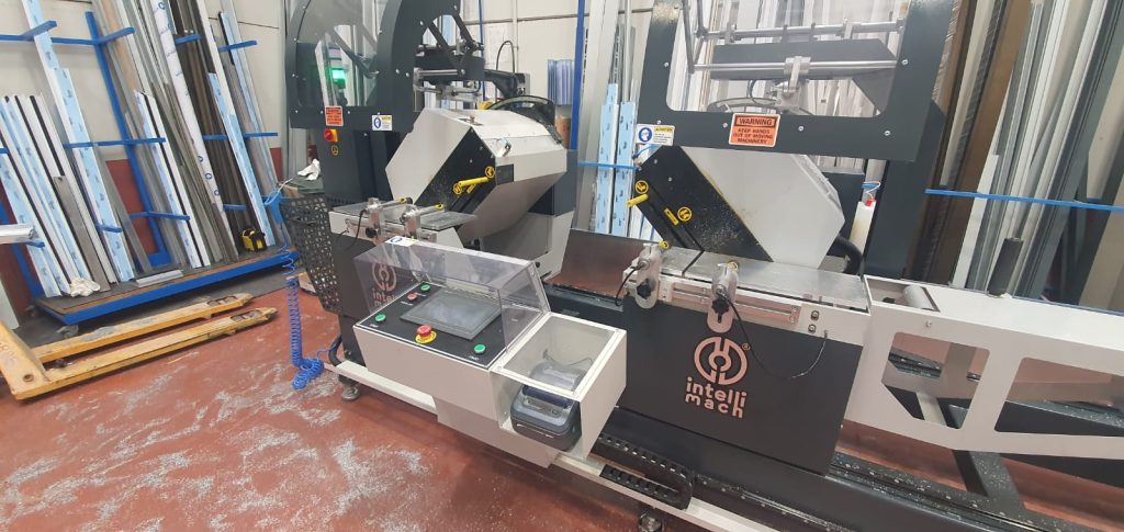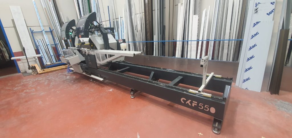 Instalación de una tronzadora doble cabezal para perfiles de PVC en Arcalu Zaragoza.