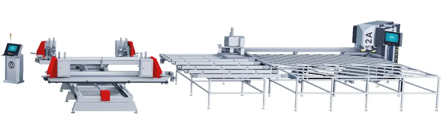 Centro de limpieza y soldadura de PVC de Intel Makina Soldadura de cuatro esquinas y limpieza de esquinas CNC La máquina soldadora de cuatro esquinas de la línea de automatización está formada por la integración de la estación de enfriamiento y retención, Estación de torneado robótico y máquina limpiadora de esquinas CNC. Después de soldar el marco y pasar por la estación de enfriamiento y espera, girando todas las esquinas. con el sistema de giro robotizado y limpieza de todas las escorias formadas durante la soldadura, controlando todas las etapas con el sistema informático.